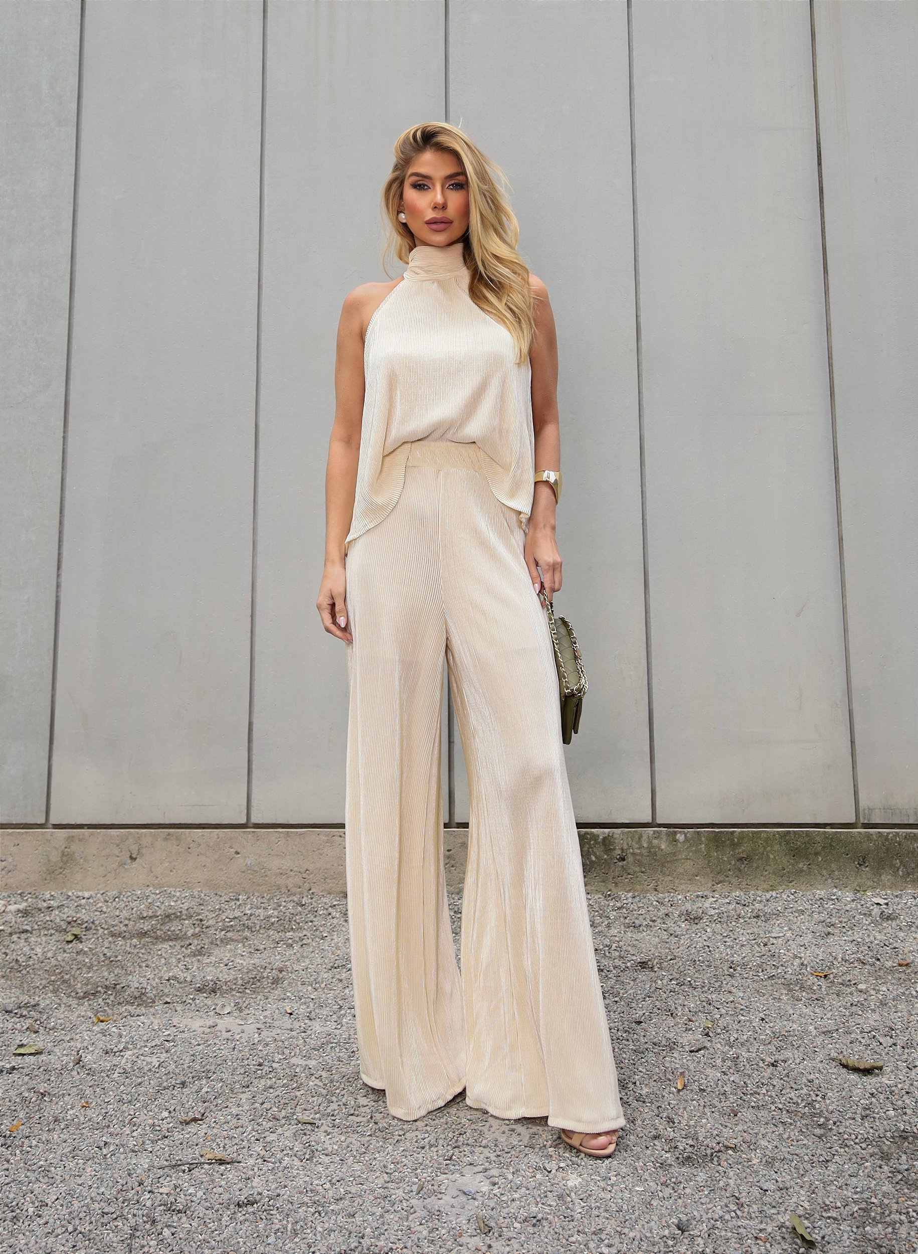Conjunto plissado acetinado - TAM único, vestindo 36/38 ao 42. Forrado e soltinho (comprimento ideal até para 1,75 de altura)