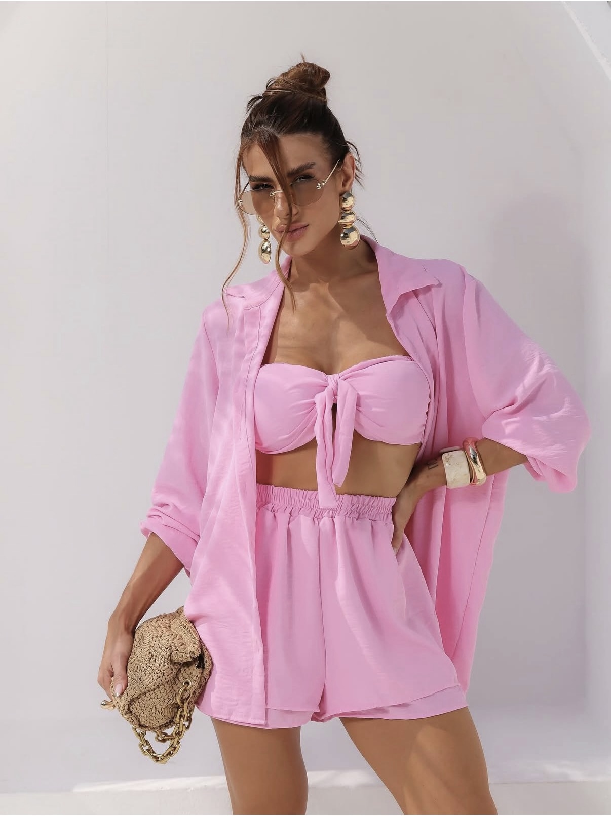 Conjunto Crepe de camisa com shorts babado (não marca e não fica transparente por ser duplo tecido)