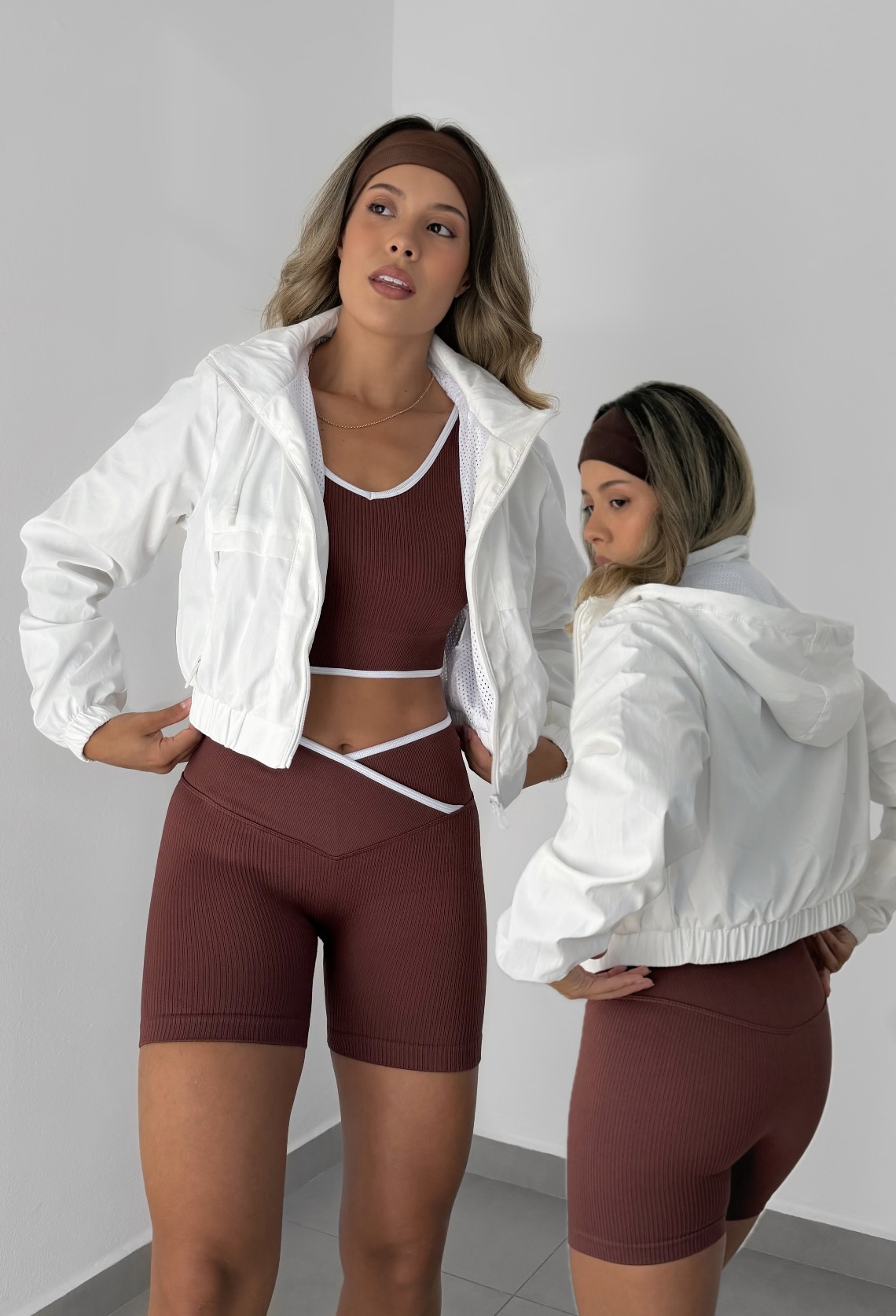 Jaqueta corta vento acinturada cropped Lana em duplo tecido (mais grossa e quente)