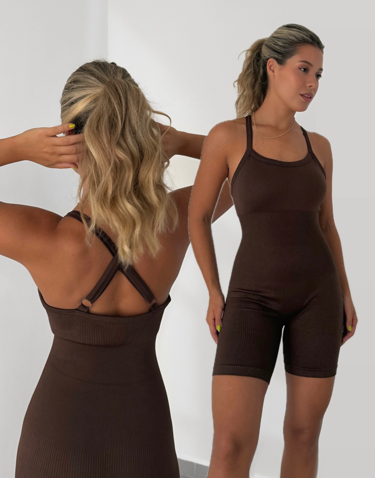 Macaquinho confort-fit sem costura e sem transparência. Com bojo removível e alça ajustável. Comprimento do shots ajustável no seu comprimento, com alta elasticidade