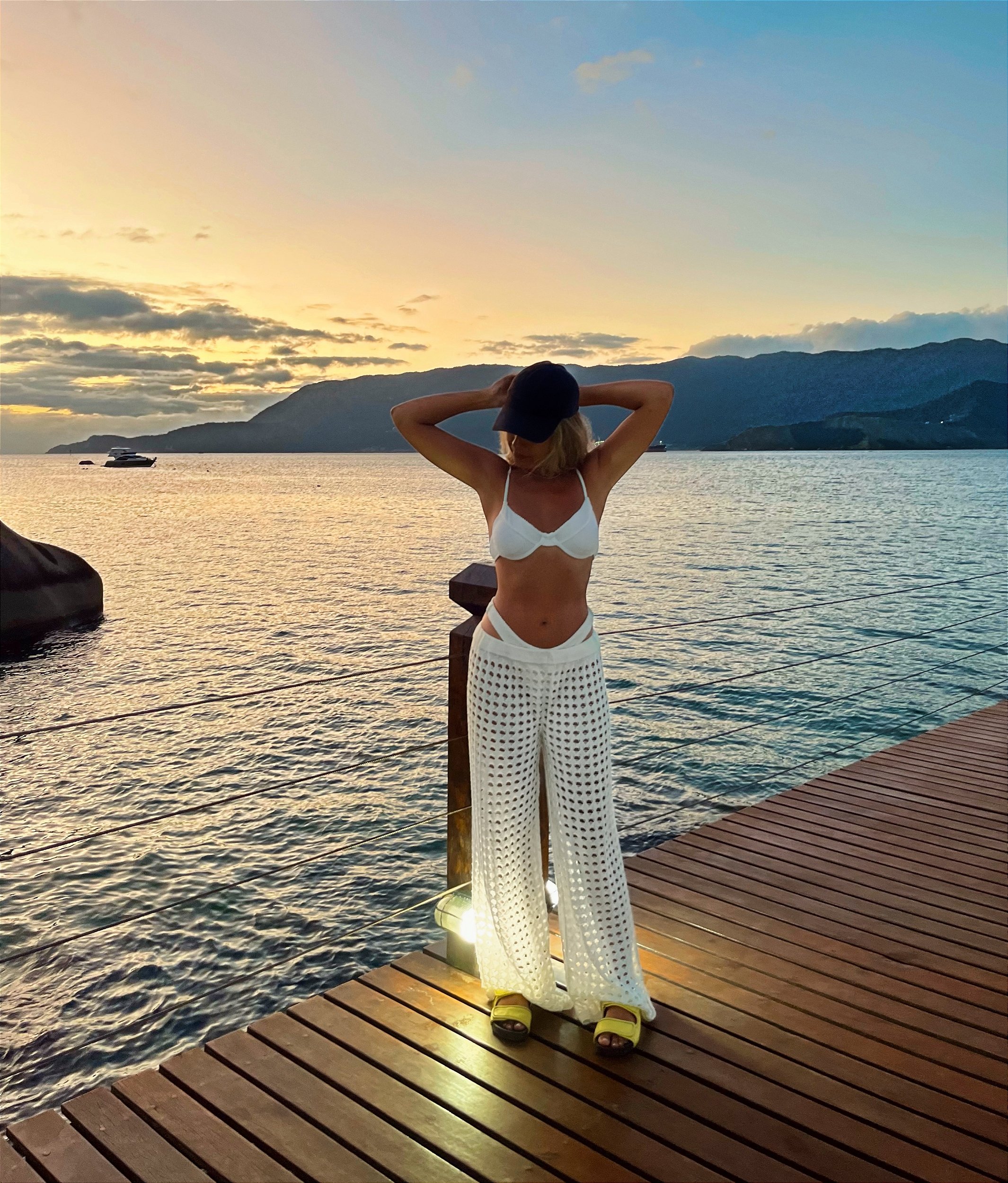 Pantalona de tricô saída com amarração no cos para ajustes de tamanhos. Tamanho unido vestindo até 44